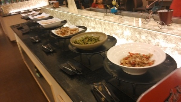 又廣大,自助的餐區集中並稍作分流的在店內中間的位置,而四
