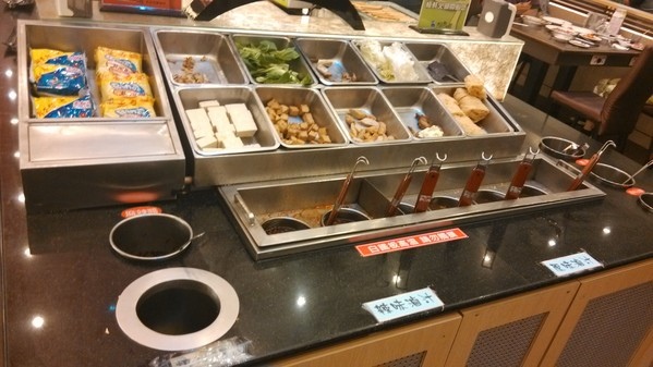 加湯區與各式調味料-各式的湯頭跟想要淡化的白開水都有,而