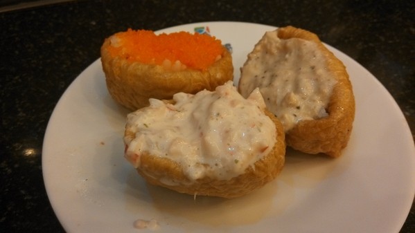 的壽司,因此也吃到了三塊直接現點現做的豆皮壽司,口感吃起