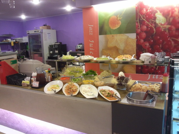 間以東區來說算是適中不會擁擠,裡側提供沙拉吧與蛋糕給客人選用