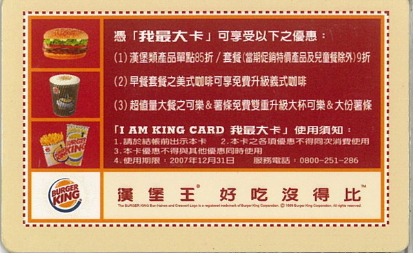 最近在整理東西時剛好發現之前一直留下來的漢堡王VIP我最大卡