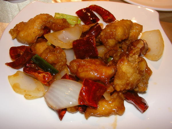 左宗棠雞-雖然實體有大片的辣椒讓人一開始就感覺這道菜色會十分的辣味,但吃下去後其實卻一點也不辣,肉質也很可口,是一道還不錯的菜色