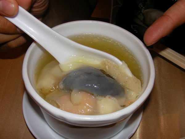 原盅竹笙灌湯包-看起來就是一道海鮮味十足的港式湯品,但看到竹笙卻有種莫名的感覺,直覺得推給另一個人去品嘗