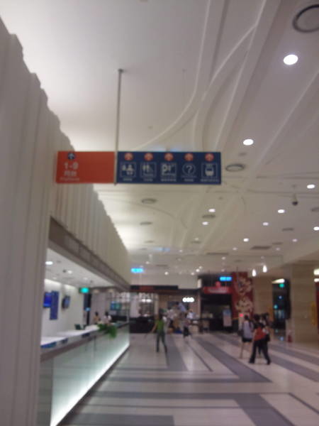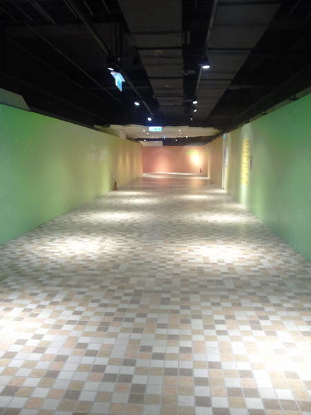 不讓一般人進入!而走道的一邊則是個小水池與部分進駐在一樓廣場的統一旗下可以看得到的連鎖商店看板