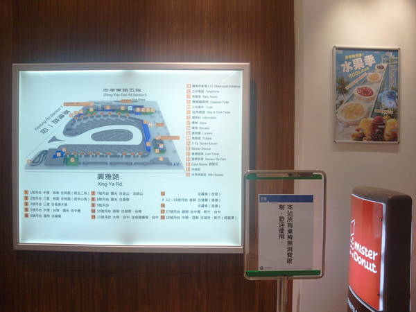 一進門在右手邊就是小七,可惜沒有OPEN醬的加持讓這邊地布置可以更加的可愛!而再走幾步路就有個小型的休息座位區可以在這邊上上網等車,一旁的液晶電視還有標示時間避免乘客等待食錯過了時間。休息區域再過去一下,就是donut甜甜圈的世界,趕車時可以買一下甜食充充飢!