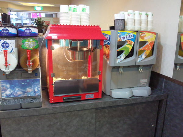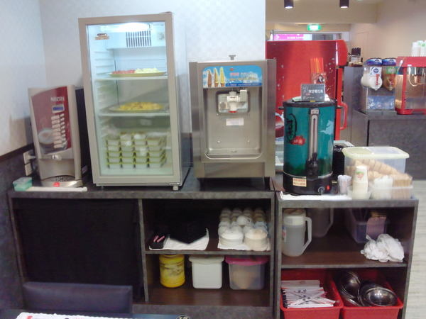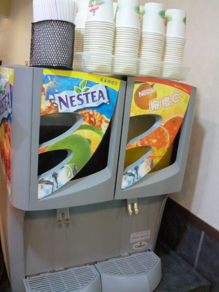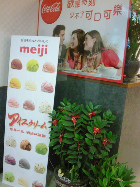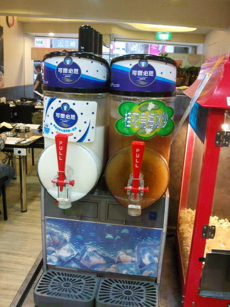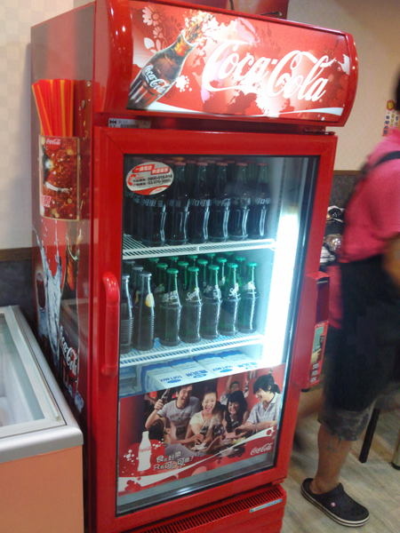 可口可樂玻璃櫃-供玻璃瓶的可樂跟雪碧飲用,至於下面的乳品則是霜
