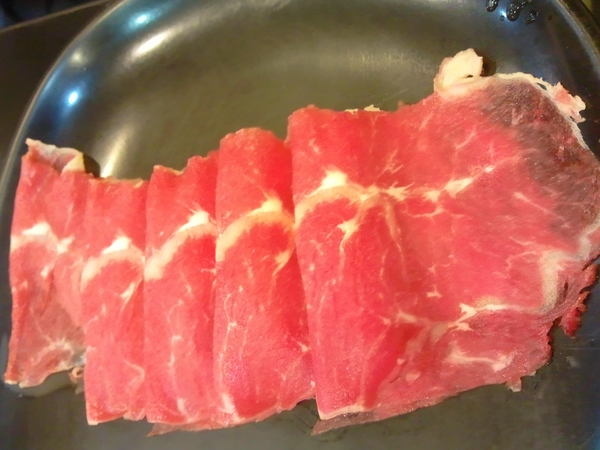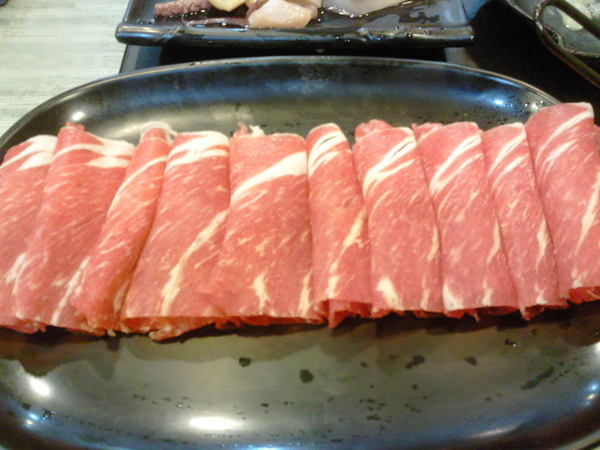 斯黑牛了,切的厚薄適中,涮下去沒幾秒就可以食用,如果涮太久肉就