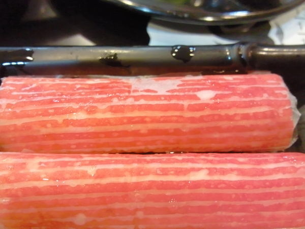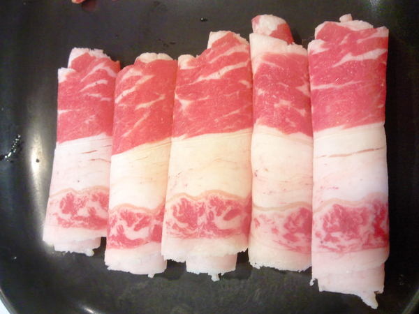 美國培根牛肉-油花最多的一道,因為涮下去的油脂不少,如果比較不