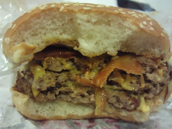 三層犇牛堡實體-拆開後的實體,漢堡看起來相當的飽滿,雖然