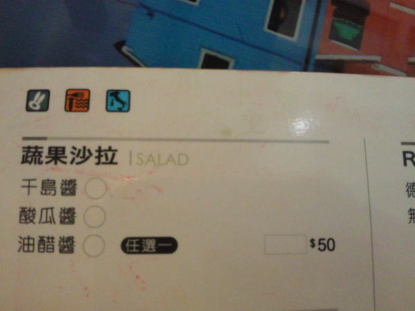 沙拉-提供的是千島沙拉,不過份量不算多,不過上面胡蘿蔔圖