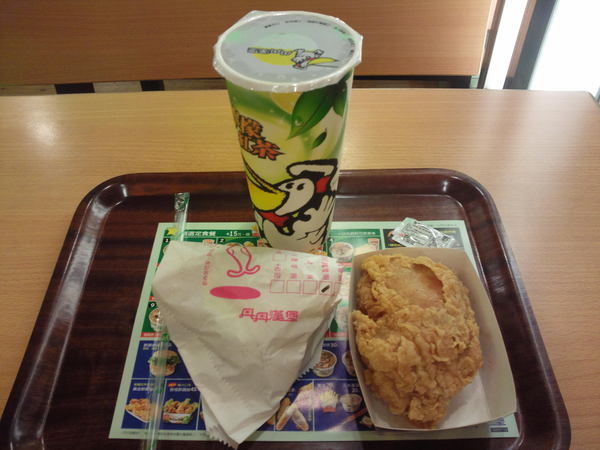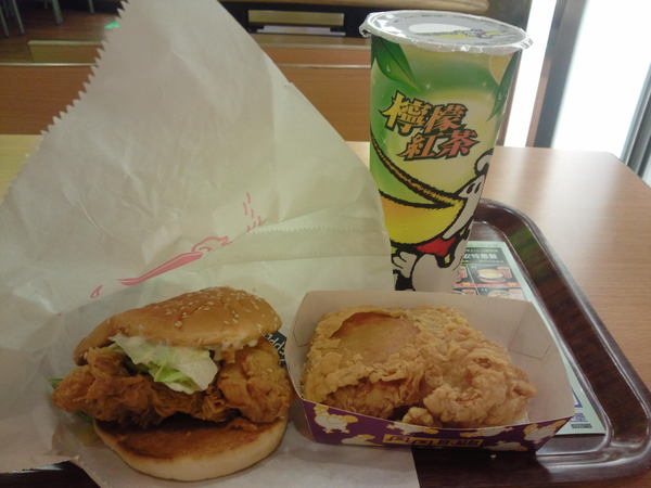 鮮脆雞腿堡+脆皮炸雞+大檸檬紅茶-感覺漢堡被壓扁了一些