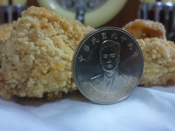 起司雞排大小-這次拿九十九年的蔣渭水先生的拾元紀念幣來當個