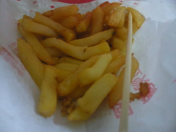 薯條-這次叫的是小份的,不過拿回家後在吃完雞排才準備吃時已