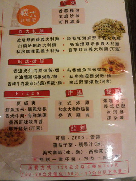 在食材的部分,除了甜點較為精緻化(小)之外,其他的炸物、義大利