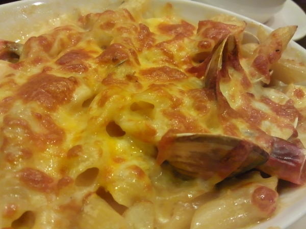 香濃奶油海鮮焗麵-這一道放的蛤蜊跟鮮蝦放的也都不算少,對於喜