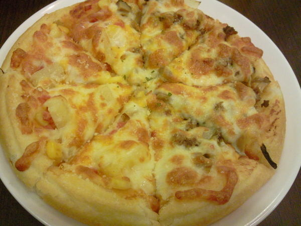 鮪魚玉米披薩-些許的鮪魚跟豐富的起司加上玉米配料,除了灑上