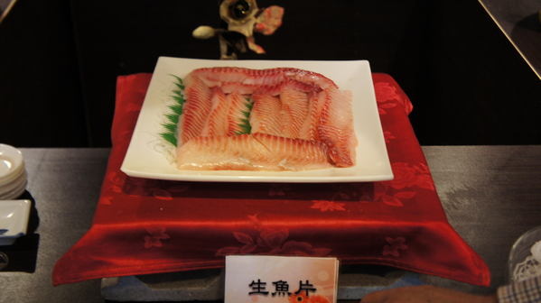 交替出菜,等醉豬腳被拿完或是剩不多時又會放生魚片上來