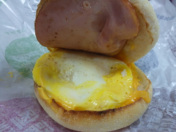 是選用鬆軟可口的滿福堡麵包,裡面的食材包了火腿、起司與蛋