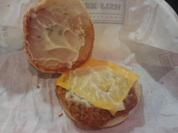 起司與脆雞排再塗上塔塔醬組合成,其中塔塔醬份量感覺只有第