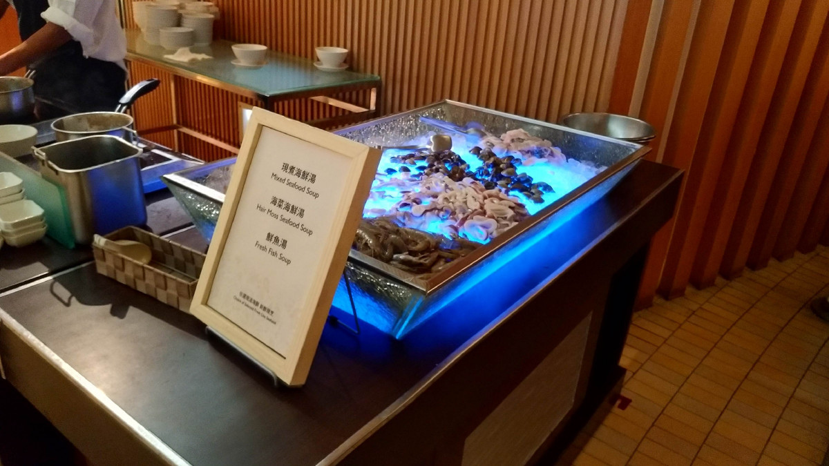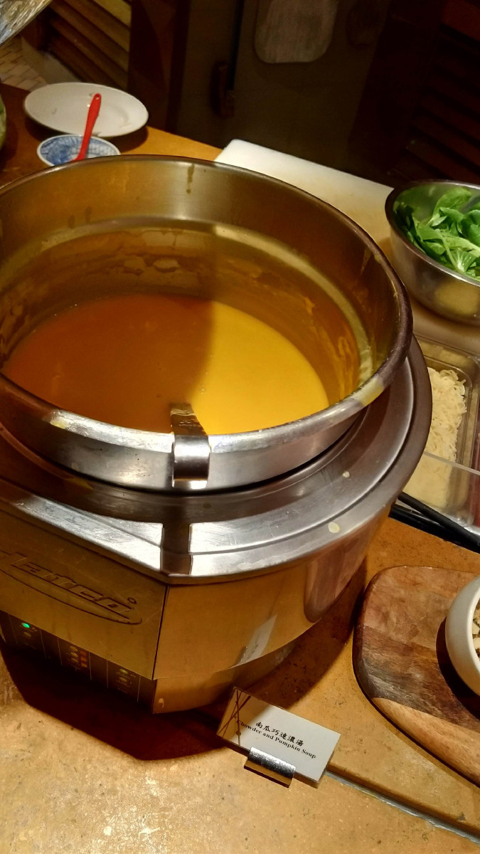 湯品區--提供南瓜巧達濃湯及淮山紅棗豬肚烏雞湯兩種