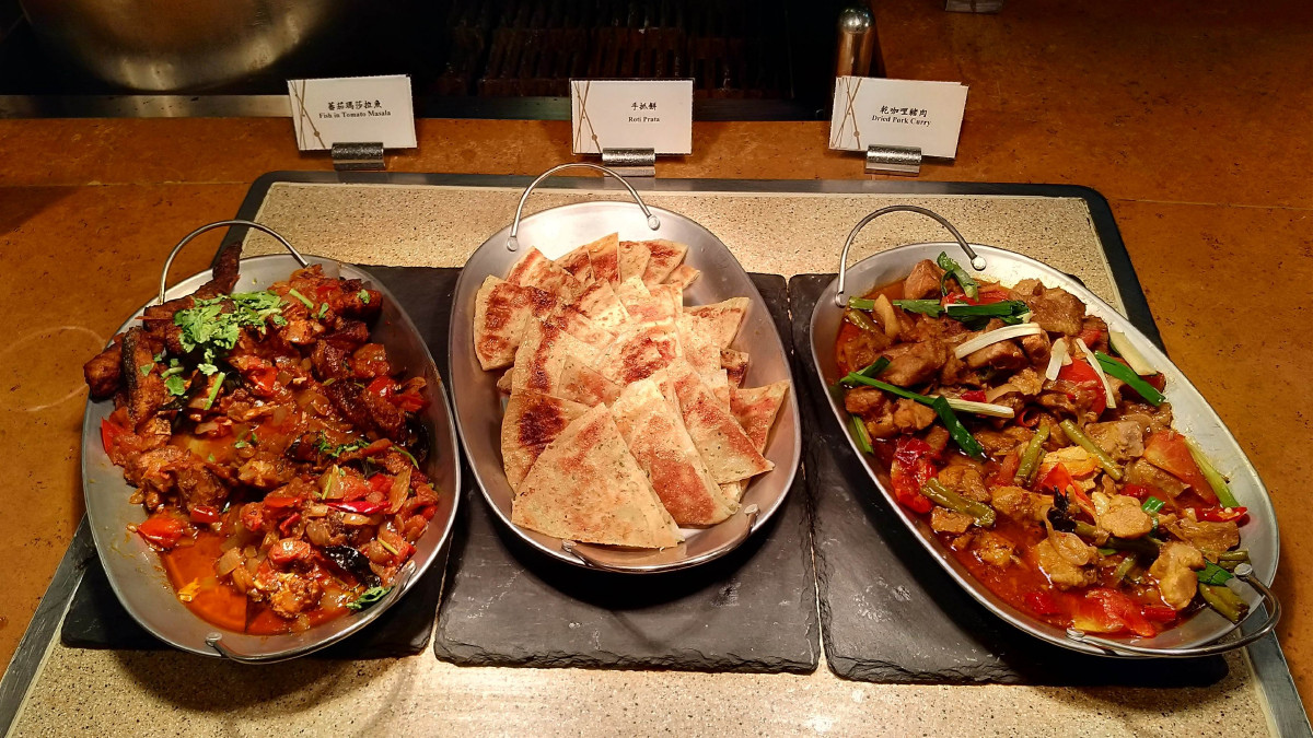 乾咖哩豬肉、手抓餅、蕃茄瑪莎拉魚-