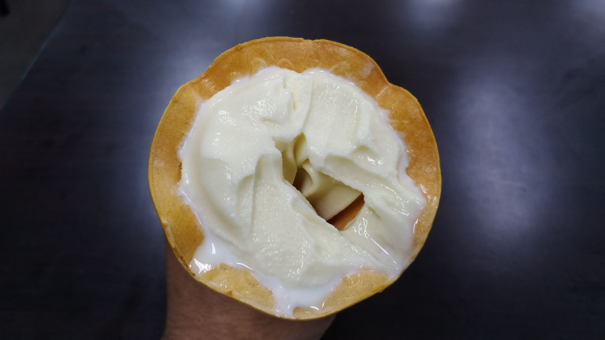 子霜淇淋,吃起來淡淡的蜂蜜香甜感裡摻雜了些許柚酸的滋味,