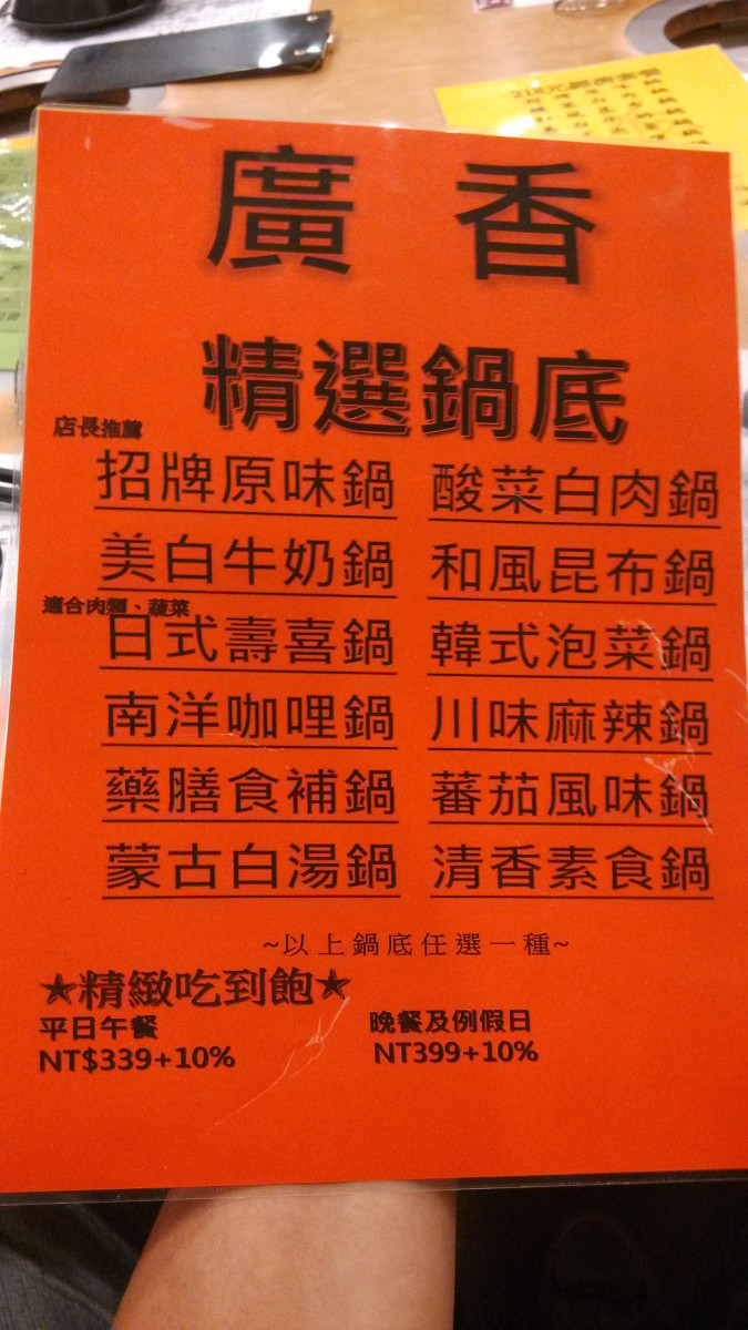 奶鍋、和風昆布鍋、日式壽喜鍋、韓式泡菜鍋、南洋咖哩鍋、川