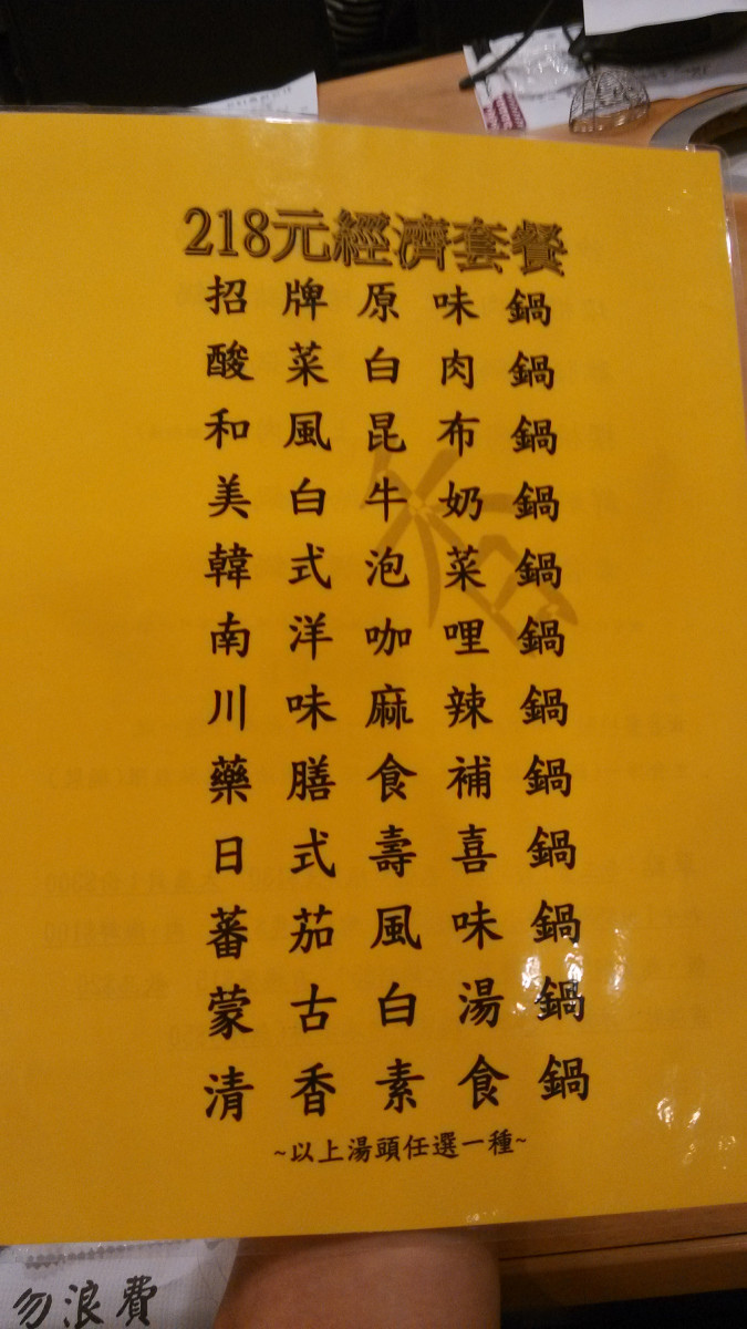 MENU-當天選的精選鍋底提供招牌原味鍋、酸菜白肉鍋、美白牛