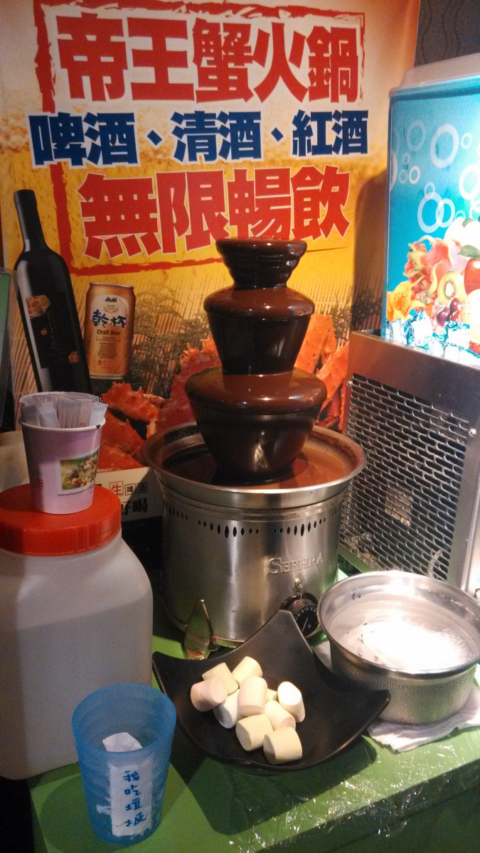 巧克力瀑布-巧克力瀑布規模算中等,而一旁有棉花糖可以拿來