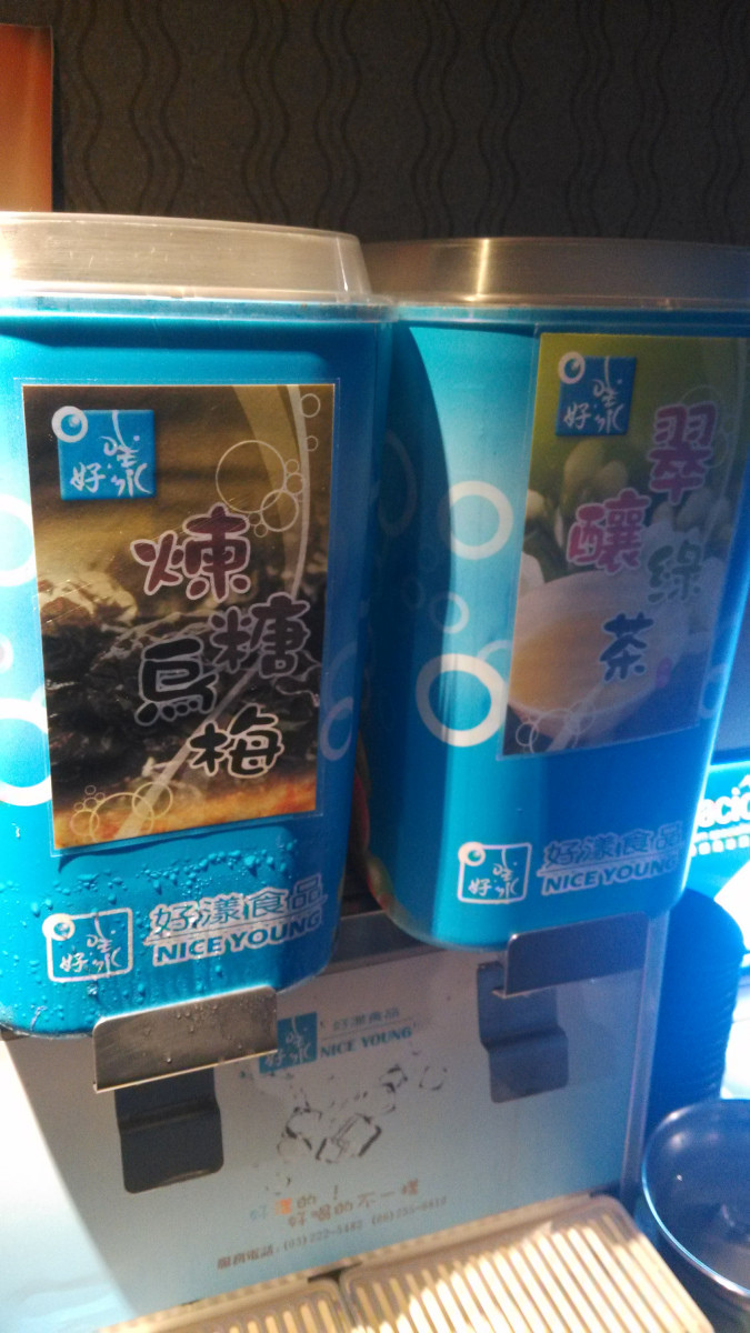 飲料機-提供煉糖烏梅跟翠釀綠茶兩款飲品