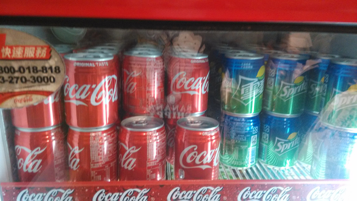 可口可樂冷藏櫃-有小罐裝的可口可樂、雪碧、芬達橘子汽水外
