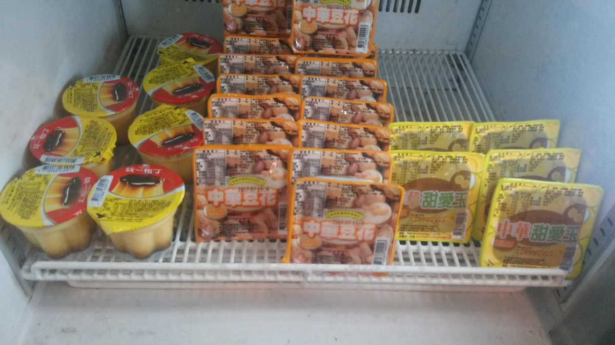茶跟芒果綠茶以及底層的中華愛玉跟中華豆花與統一布丁