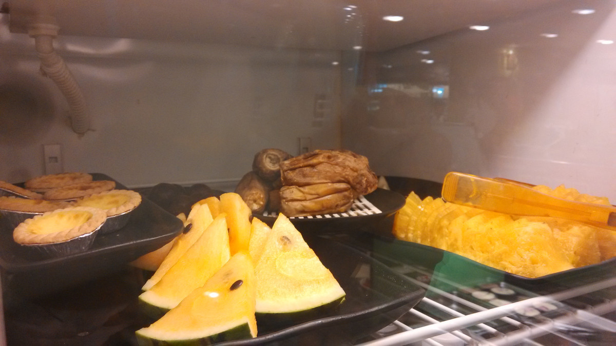 水果甜點類--當天看到的水果有小玉西瓜跟鳳梨,而甜點有蛋塔