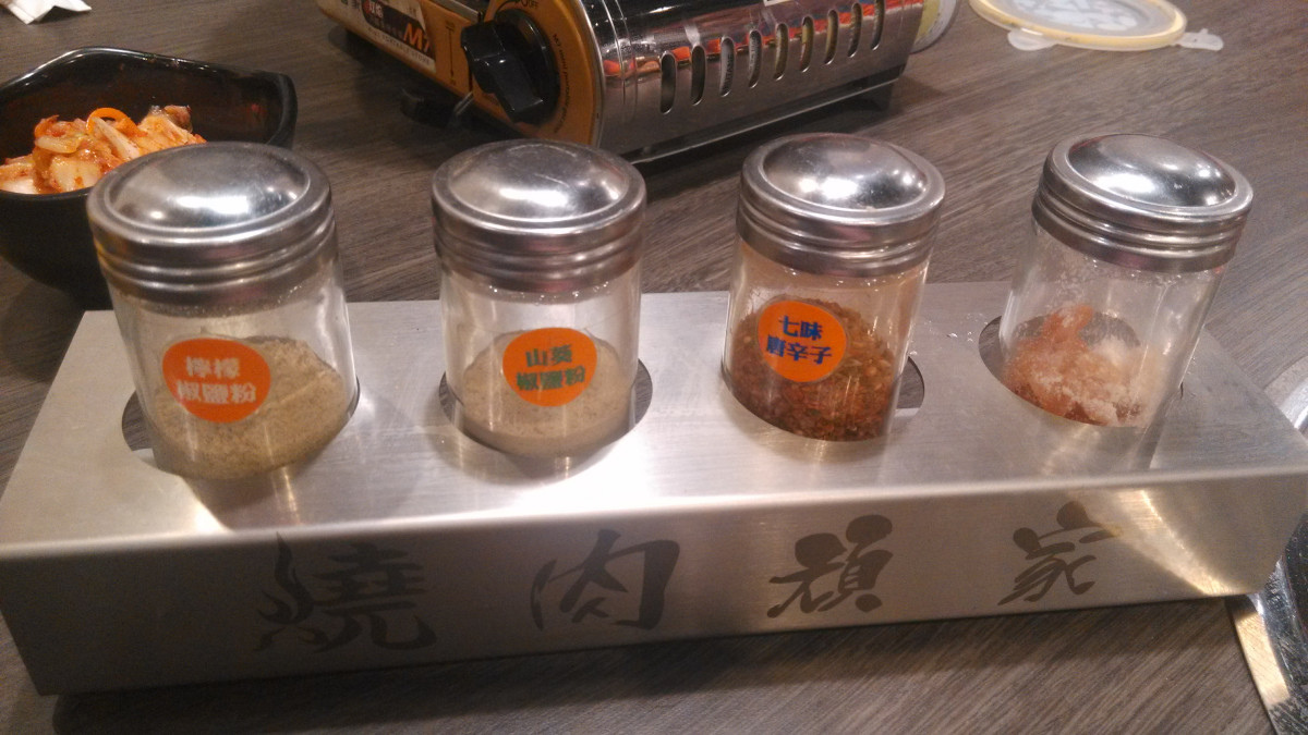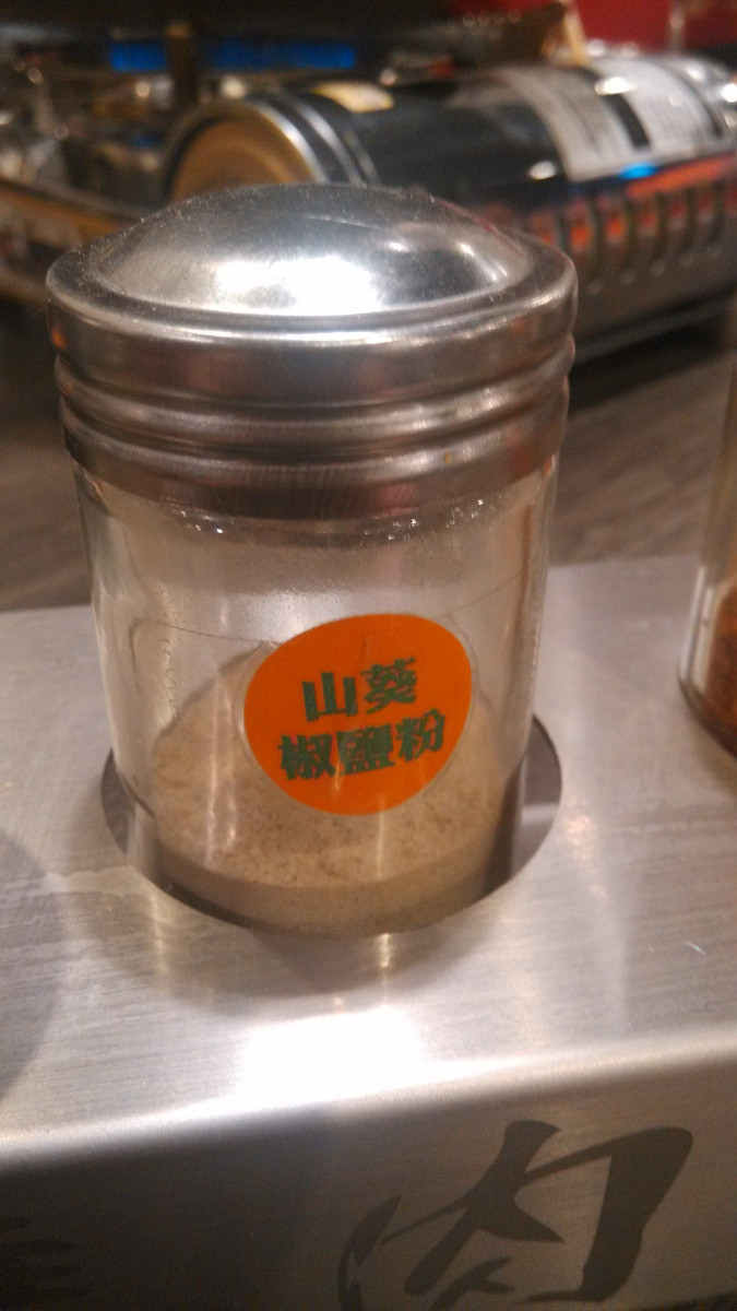 調味料-有桌上的檸檬椒鹽粉、山葵椒鹽粉七位唐辛子跟玫瑰鹽