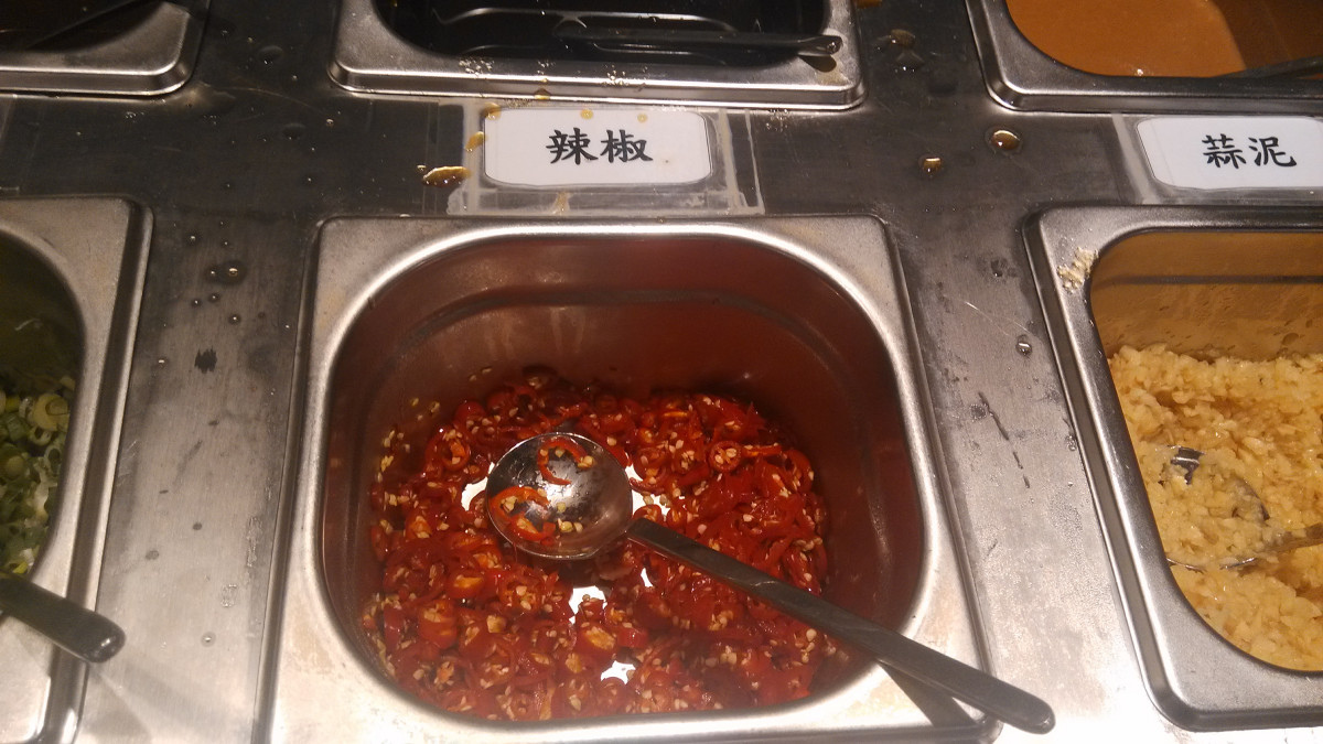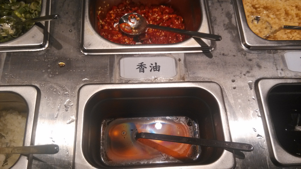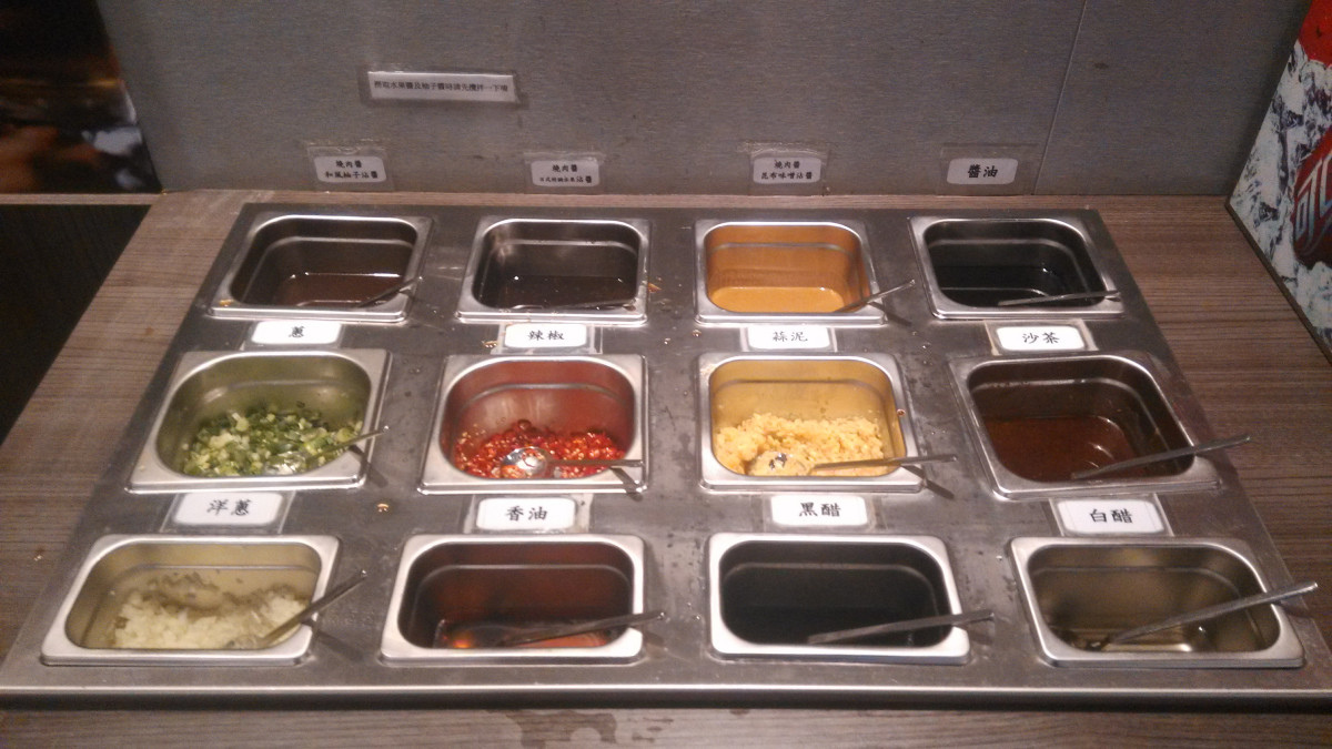 味噌沾醬、醬油、蔥、辣椒、蒜泥、沙茶、洋蔥、香油、黑醋跟