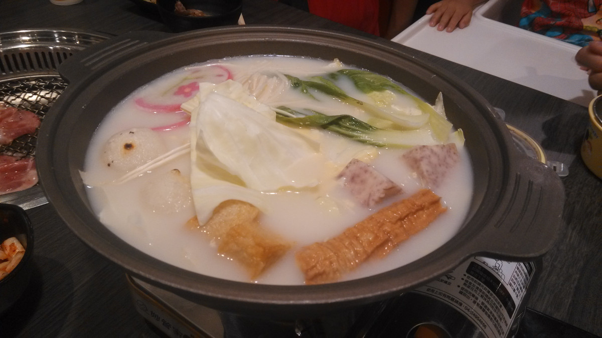 ,主要是吃鍋裡的蔬菜去烤肉的油膩感用
