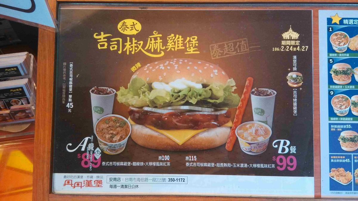 丹丹漢堡泰滿足椒麻雞堡B餐