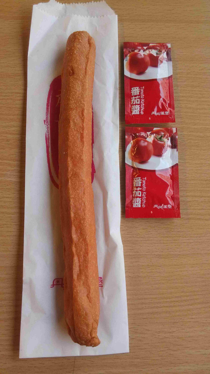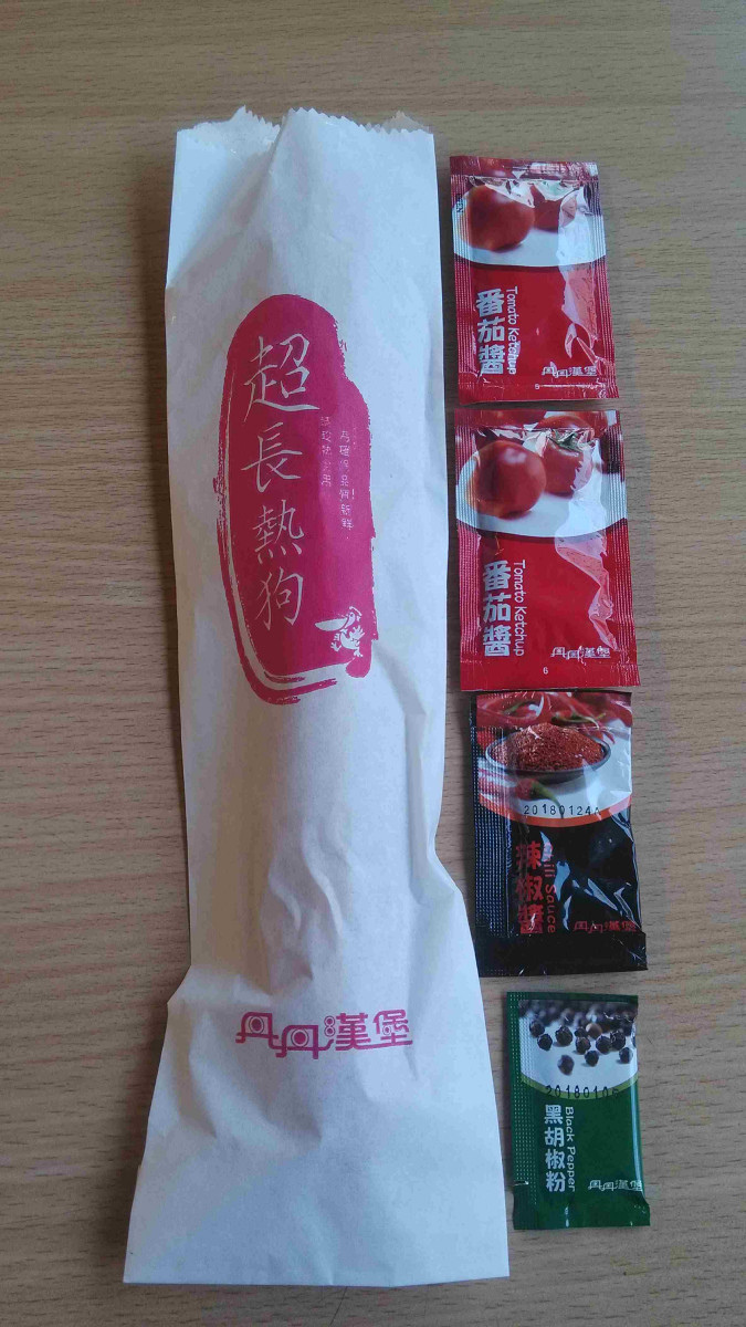 吉司椒麻雞堡外觀大小與高度-拿蕃茄醬包來做個比例,面積大