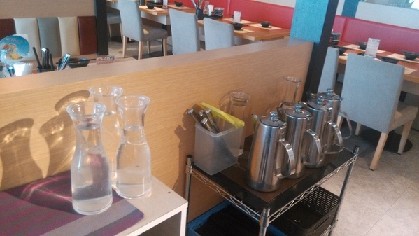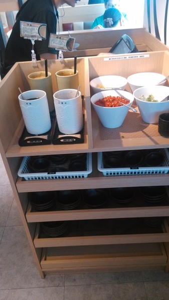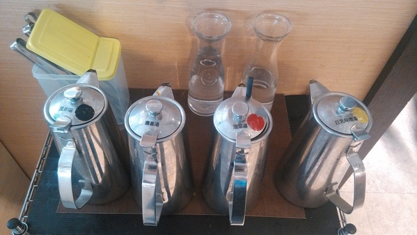 加湯區--有溫開水、昆布湯、壽喜湯、泡菜湯及豆乳味噌湯