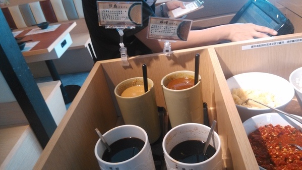 芝麻醬及桌面上的七味粉自行調整喜歡的醬料