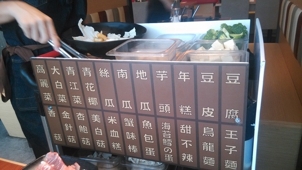 火鍋料--會先送上一盤菜盤,之後就會有服務生推著推車沿路詢