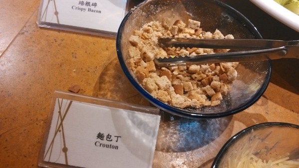 凱薩沙拉-自由搭配培根碎、麵包丁、起司粉可調出蠻不錯的味