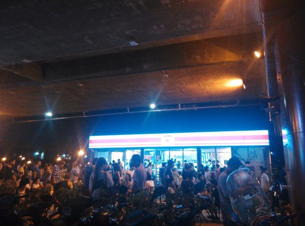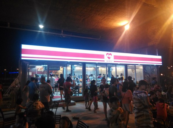 到,而旁邊的萊爾富應該是夜市裡唯一有冷氣的地方因此人潮可