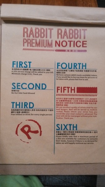 整體來說,對兔子兔子Rabbit Rabbit 美式漢堡餐廳用餐的印象