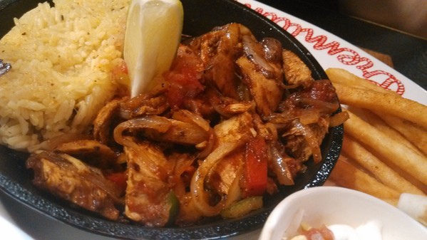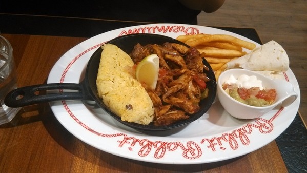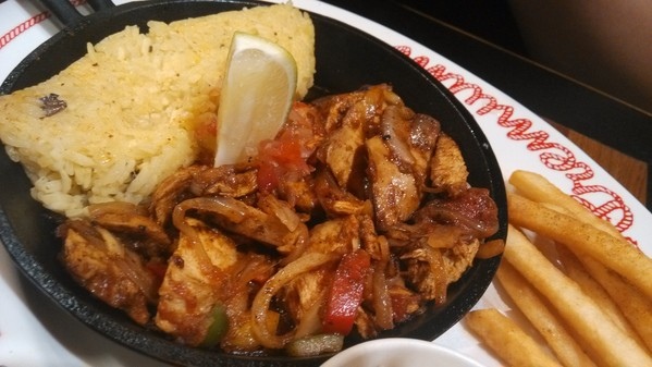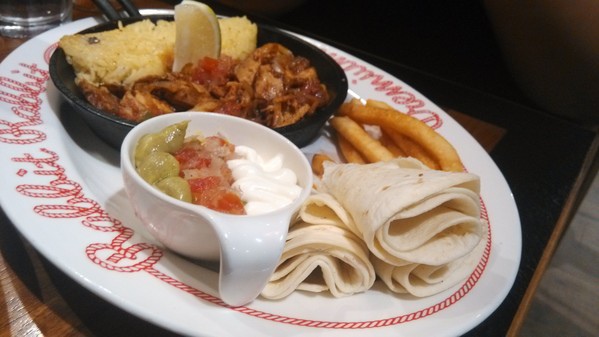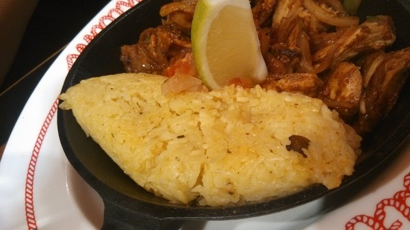 味飯、墨西哥麵皮調理成的香烤紐奧良雞肉法士達,分量看起來