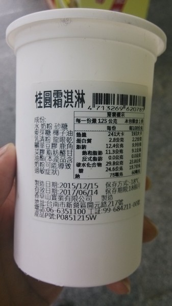 、龍眼乾、關華豆膠、鹿角菜膠、脂肪酸甘油酯調配的桂圓霜淇