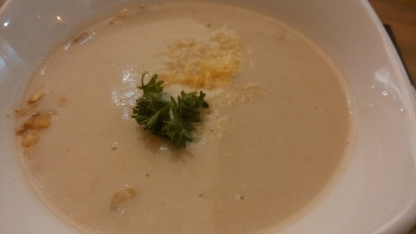 湯品--香濃的主廚濃湯口感喝起來算是蠻濃稠的,而湯品上面放