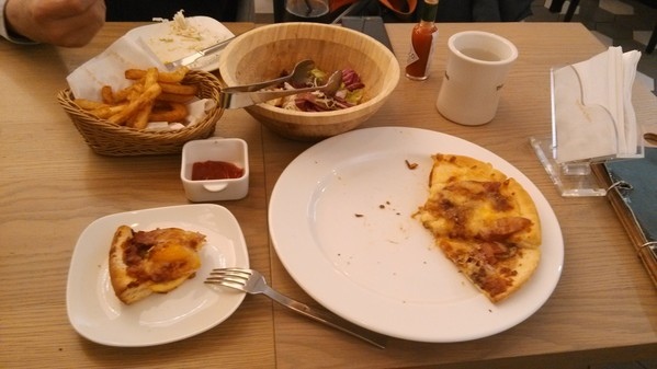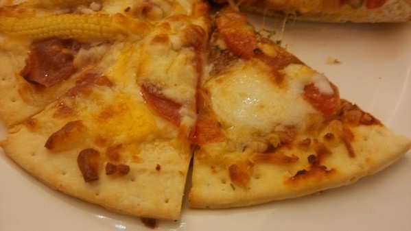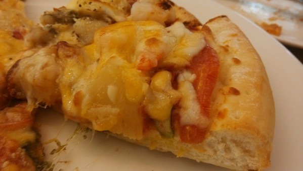 披薩挑掉餡料後還是有些許殘留的味道外,大致都還算是不錯吃