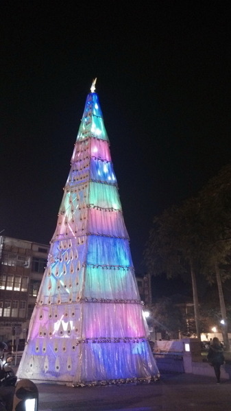 夜晚文學館前的耶誕樹還蠻漂亮的,就像是流星在耶誕樹裡不斷