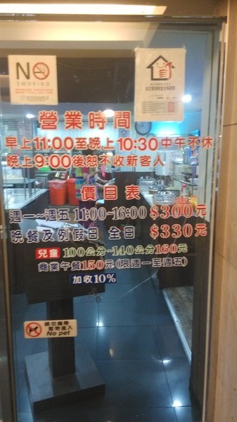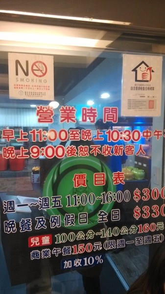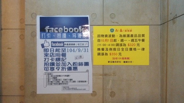 晚餐假日330元-->10月1日起調漲為350元
